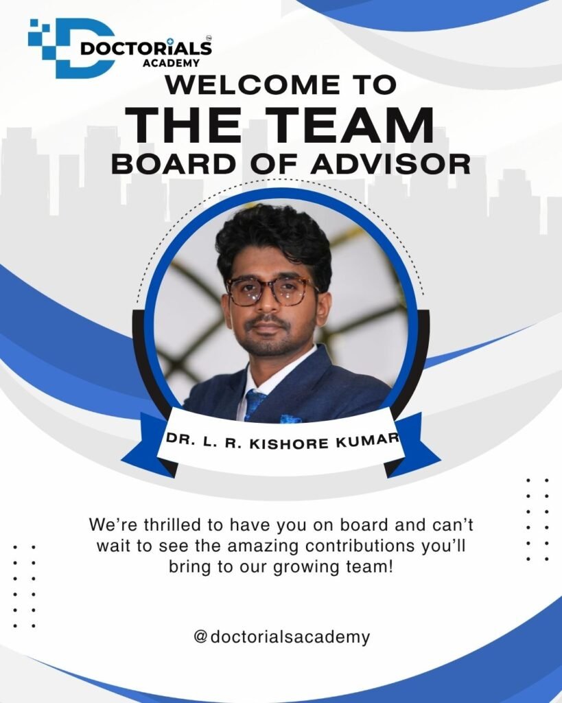 We extend our heartfelt gratitude and a very warm welcome to you on joining Doctorials Academy as a valued member of our Board of Advisors. It is truly an honor to have a distinguished professional of your caliber, expertise, and dedication associated with our organization.